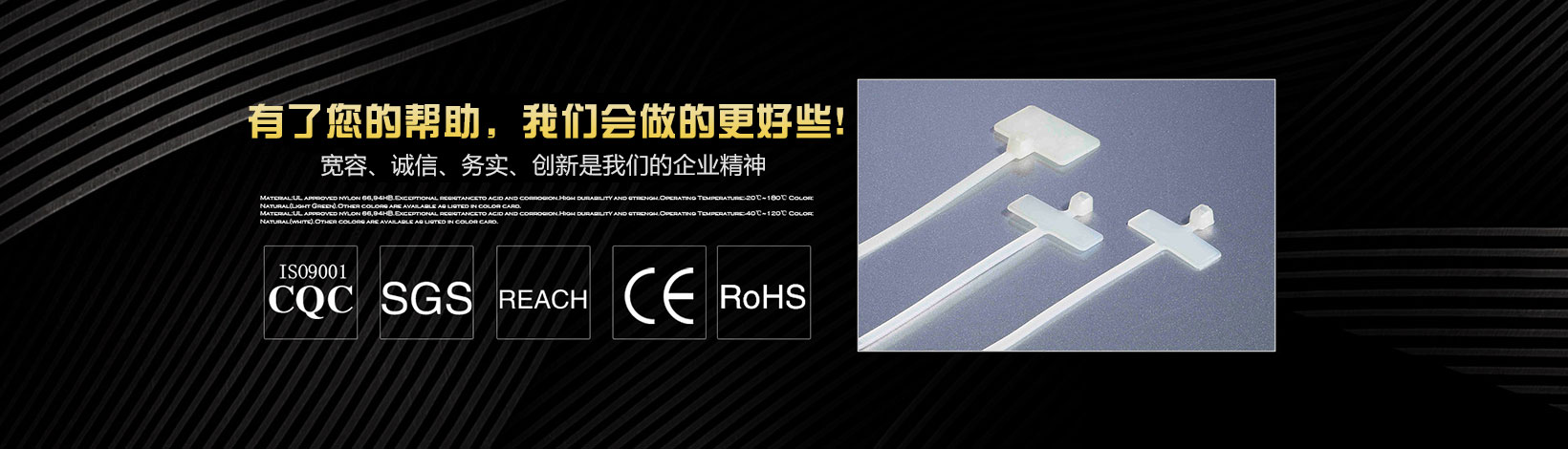 本公司專業(yè)生產銷售尼龍扎帶、特殊型扎帶、吸盤(自粘式定位片)、塑料膨脹管、尼龍壓線帽、電纜防水接頭、鋼釘線卡、R型線夾、飛機型線夾、瓷磚定位十字架、固定座、纏繞管、異型管、齒型管、號碼管、熱縮管、黃臘管、扎絲、鋼管蓋等系列產品。 我們擁有先進的檢測設備和雄厚的技術力量,并不斷優(yōu)化生產流程,規(guī)范生產環(huán)節(jié),加強完善質量控制系統(tǒng),以優(yōu)異的品質深得海內外客戶的一致好評。